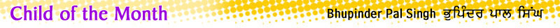 This month, we are presenting another bright boy , BHUPINDER PAL SINGH as "CHILD OF THE MONTH"; in order to provide a source of inspiration to the younger generation. Our future lies in the hands of our children. It is imperative that the coming generation is imbued with unflinching faith in God, devotion, selfless service to humanity, higher human values, self discipline and life based on lofty principles of Sikhism. Creation of this page is our humble effort in this direction.